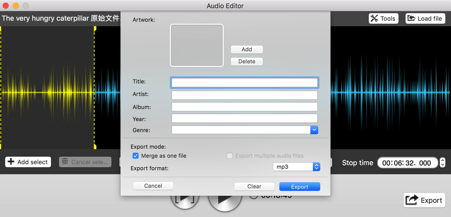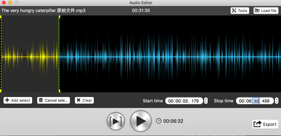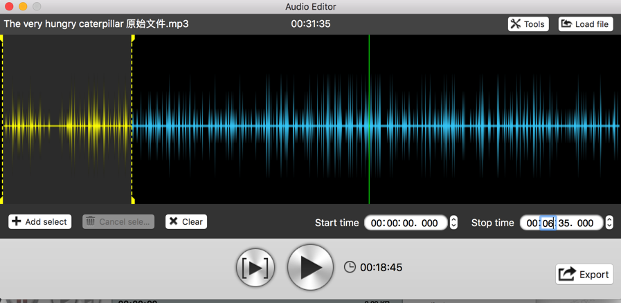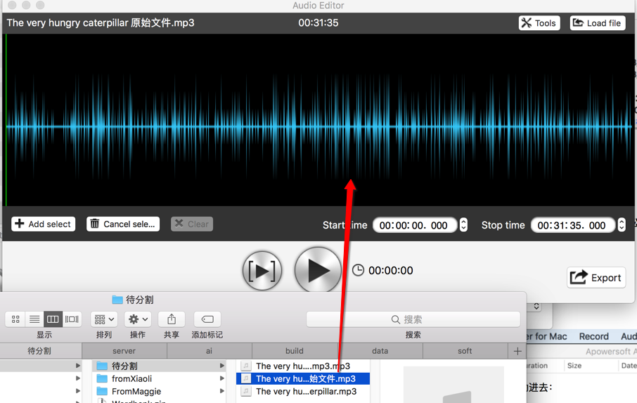 Apowersoft Audio Recorder for Mac中的Audio Editor可以图形化的形式方便的分割切割mp3音频文件。