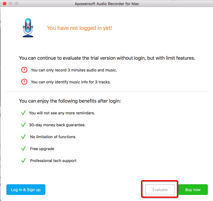 此处由于没有注册和购买,会弹框,选择 Evaluate 试用:
