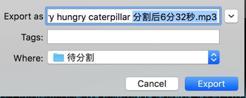 继续点击export,设置导出文件夹和文件名,即可导出切割出来的mp3音频了: