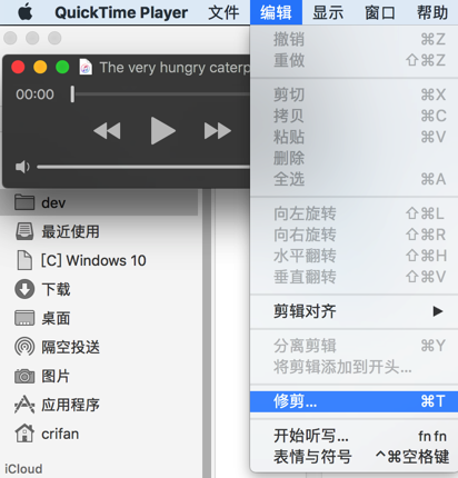 “直接用 Mac 自带的 QuickTime 软件就可以修剪 .mp3 .m4a 等格式的音频了,它也可以修剪所支持格式的视频。