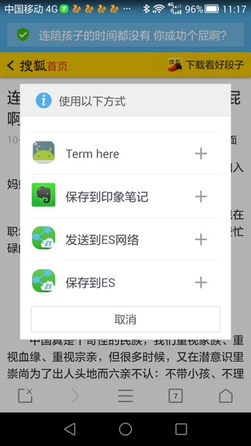 后来试了试安卓版的印象笔记,其中的,把用UC浏览器打开的网页内容分享到印象笔记,