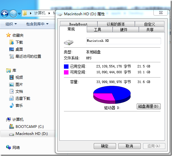 7.可以通过安装BootCamp后,便可以查看原先Mac系统内的所有文件了:
