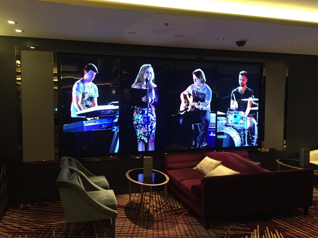 酒吧边上的墙里的大屏幕,放着歌曲: