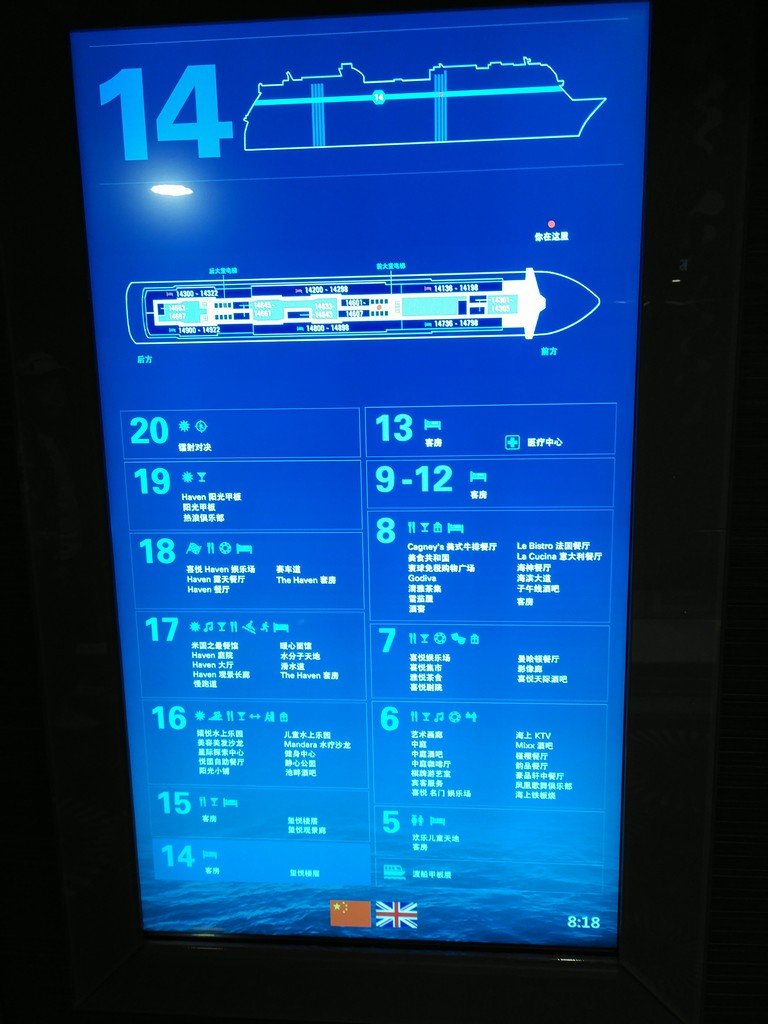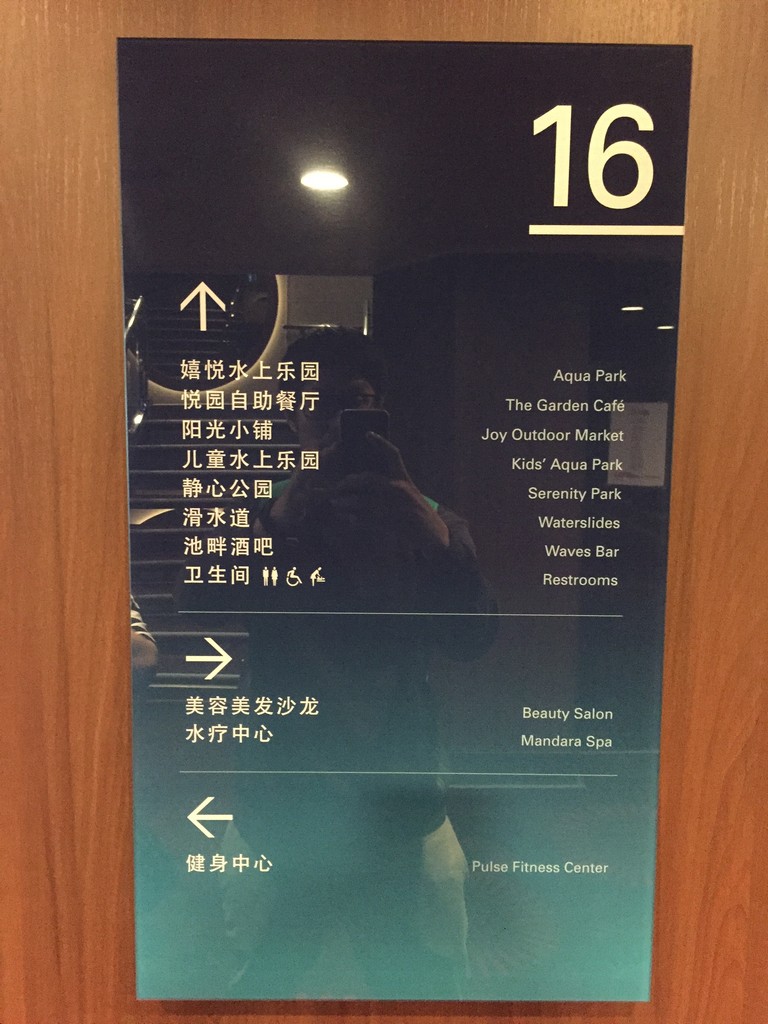 每层电梯旁,走廊边,都有各种指示,说明每层楼的设施和布局