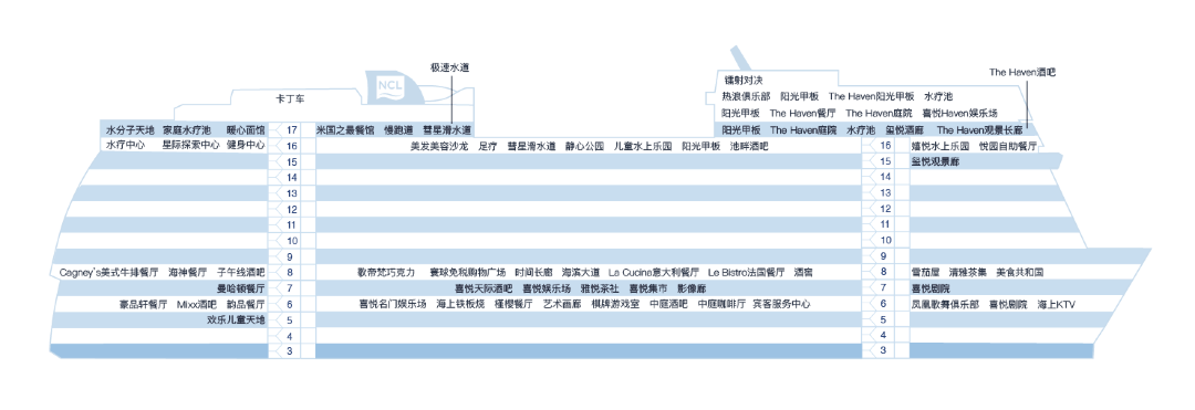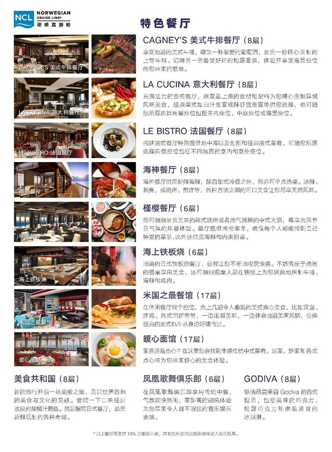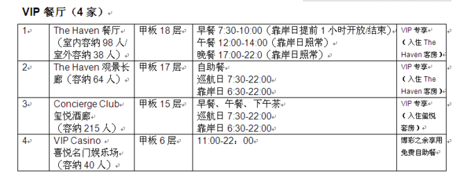 喜悦号实际免费餐厅9家(含VIP专享),收费餐厅10家