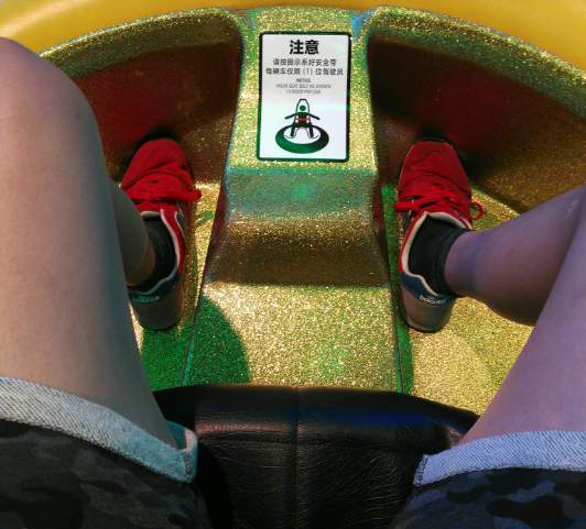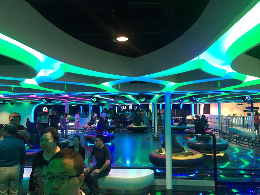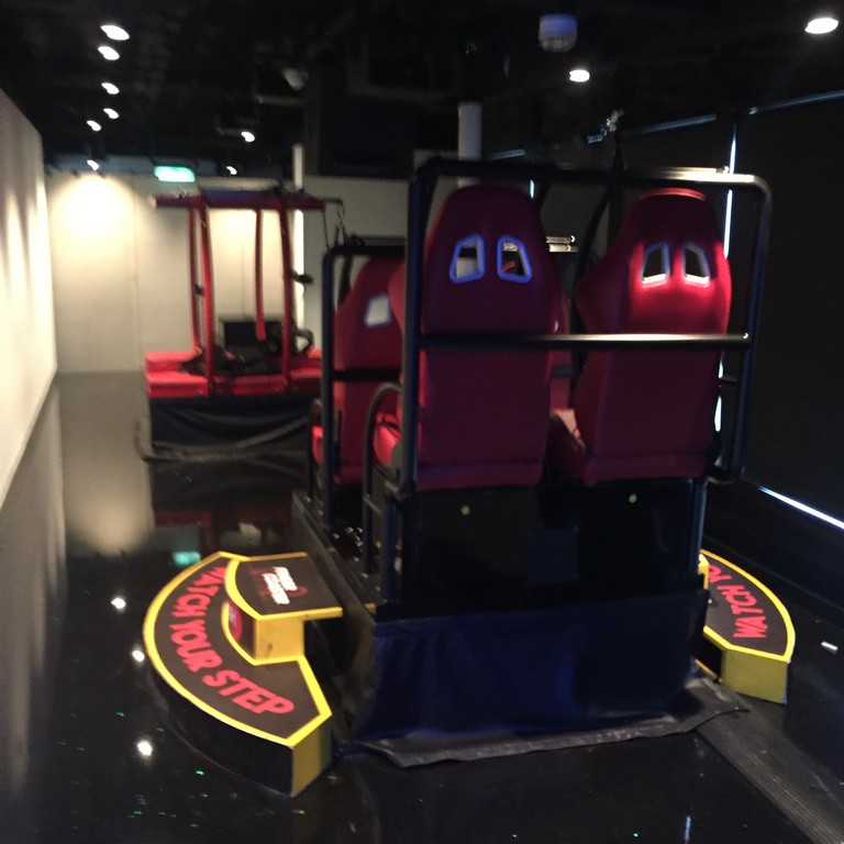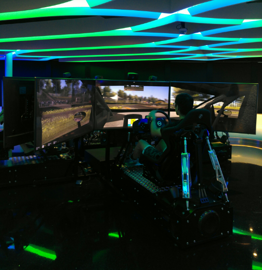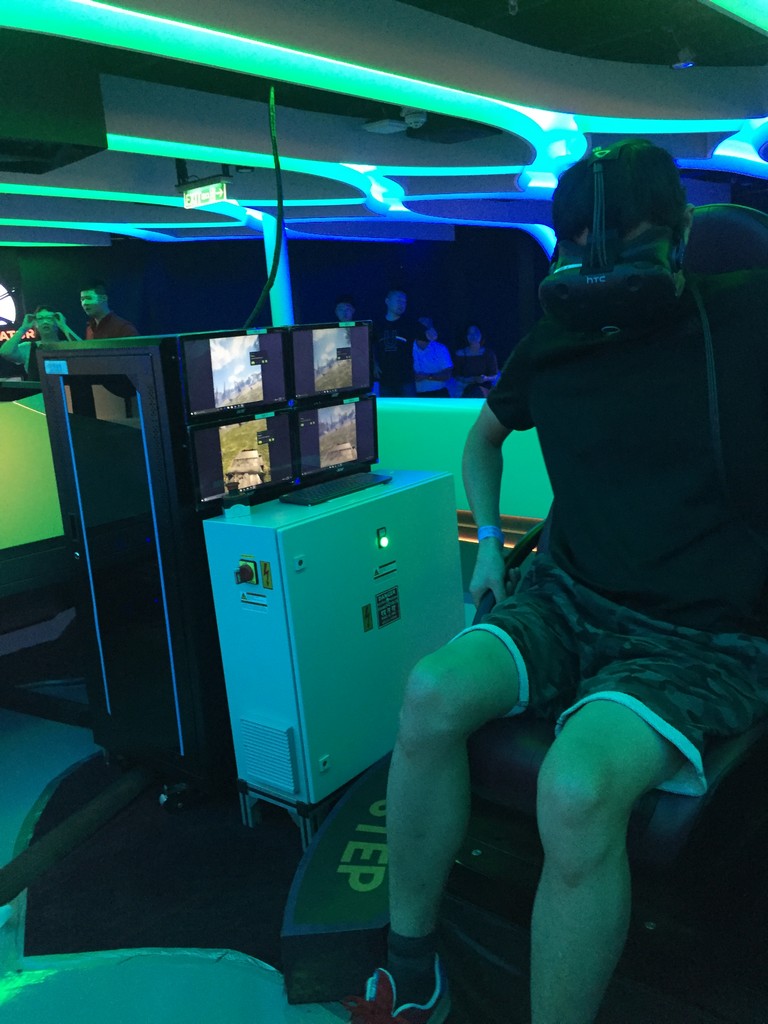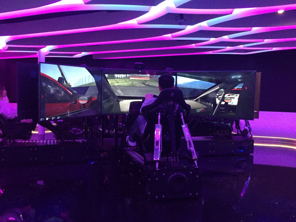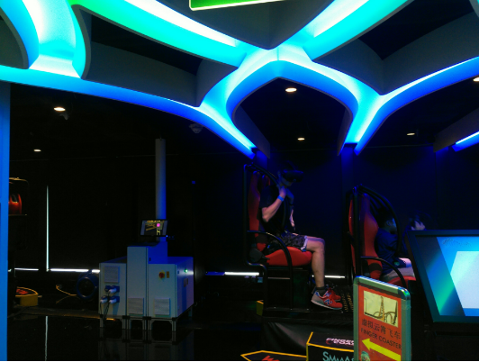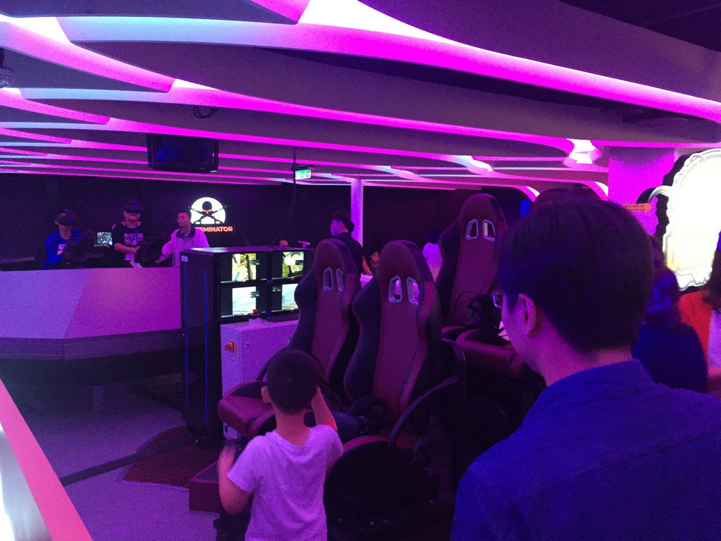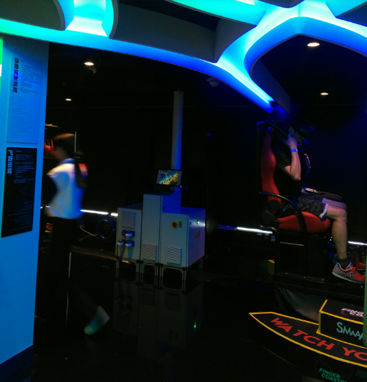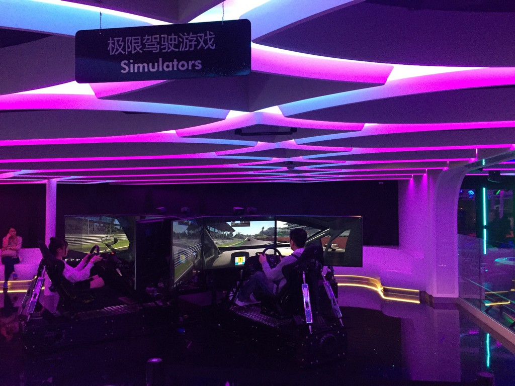 • 极限驾驶游戏 Simulator:三个屏幕拼在一起的,带方向盘的真实的有物理反馈的驾驶汽车,但是倒车等设计不太好,不容易上手。排队很慢,平均一个人要等10分钟左右。一次进去3个人。