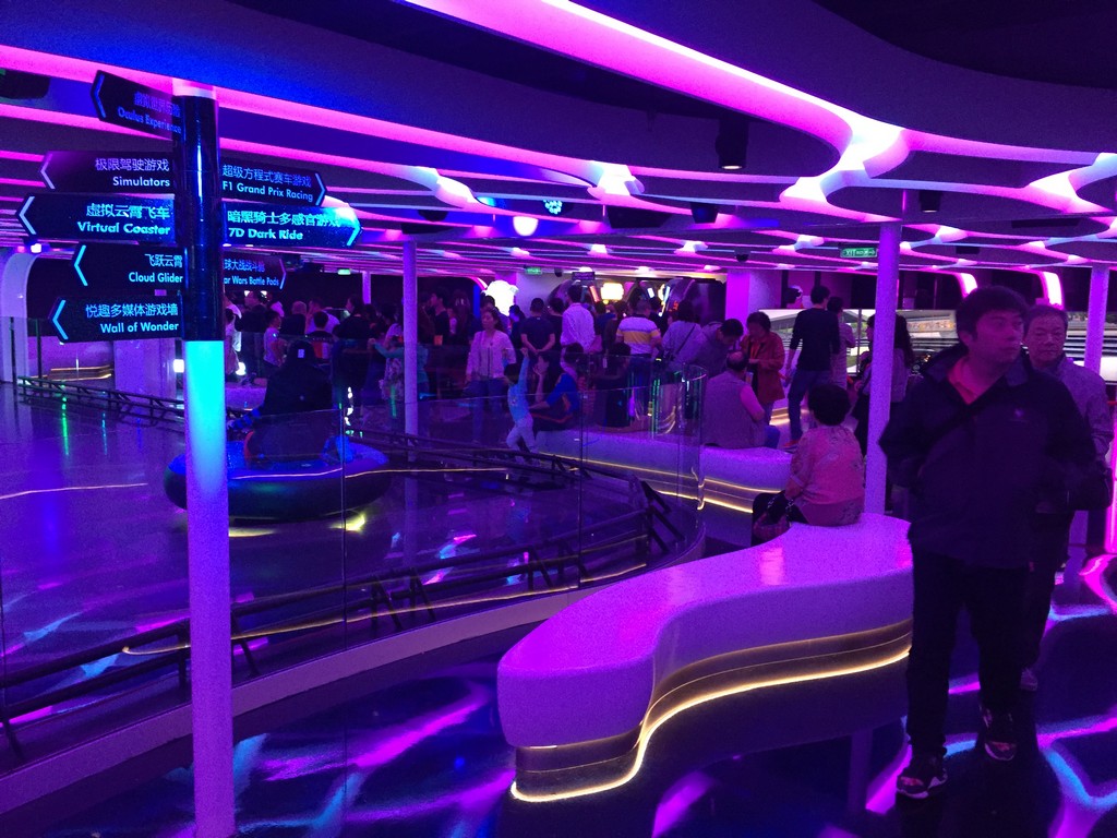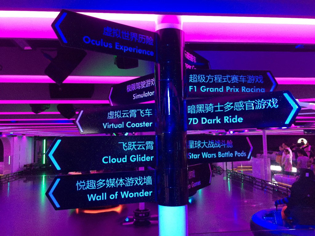 • 虚拟世界历险Oculus Experience:摩天大楼的顶楼伸出去一个独木桥/平衡木,然后让你走过去再走回来,几十秒就结束了,没玩过,看起来比较一般。排队也很慢。一次1个人。