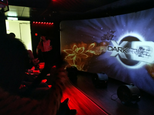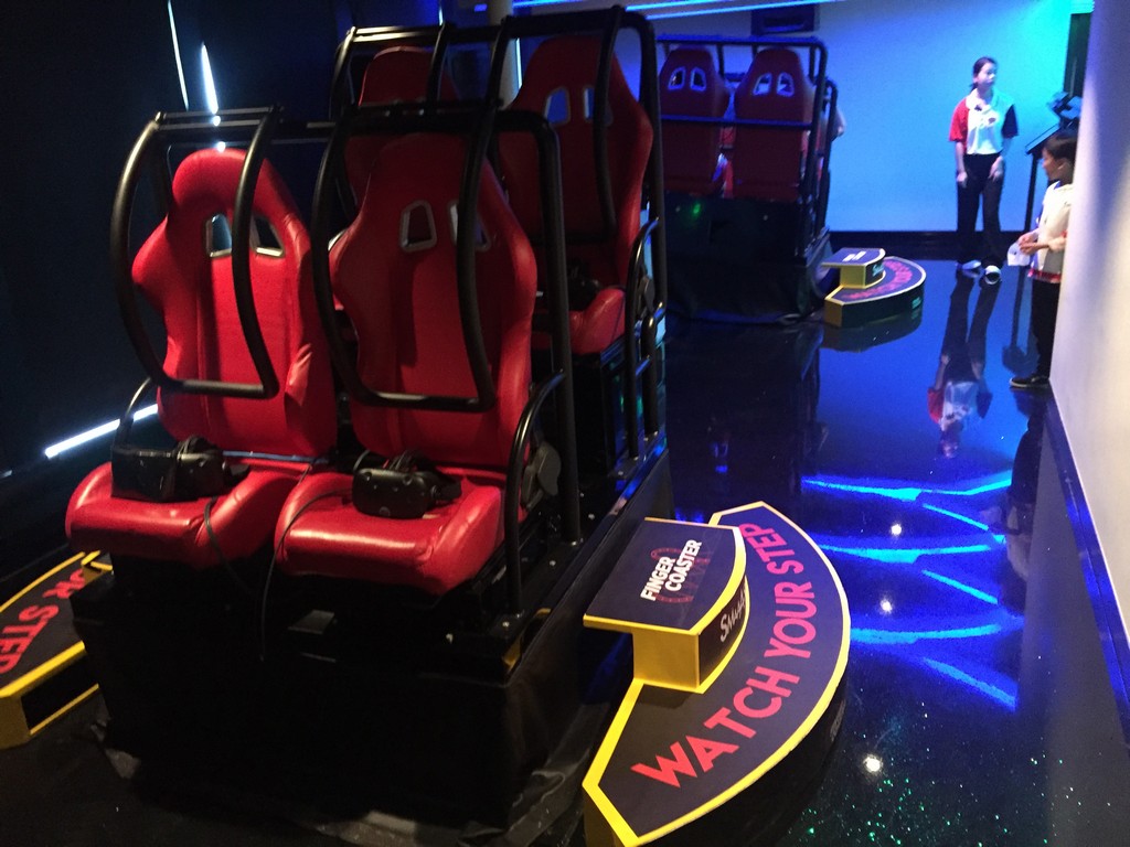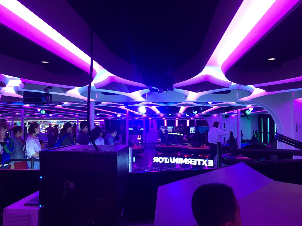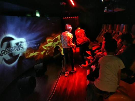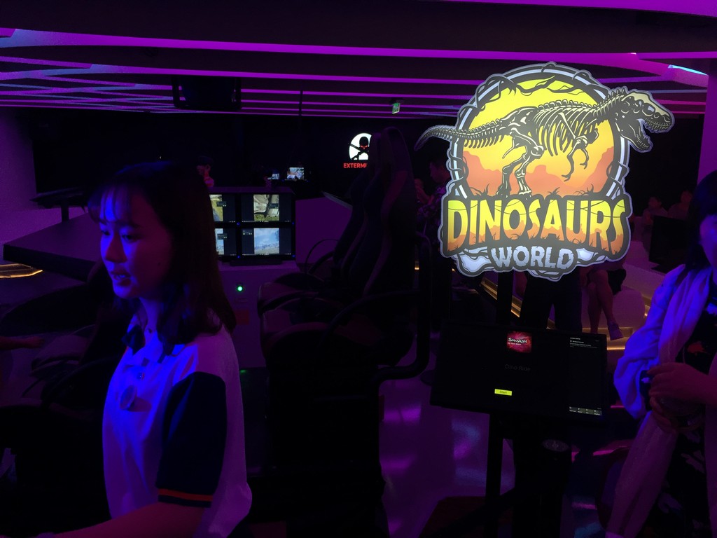 • 暗黑骑士多感官游戏7D Dark Ride:进去后,做在一排座椅上,带上VR头盔,拿起右手边的电子枪,打怪兽。有个2,3轮。总体玩起来也很快的。排队很快,一次10人左右,所以一般不用排很长时间就能玩。