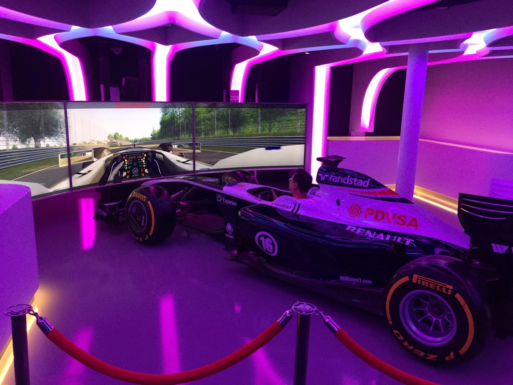• 超级方程式赛车游戏 F1 Grand Prix Racina:真实的F1大小的车,坐进去,但是车是不能动的,前面是非常大的3个屏幕拼接出来的大屏,驾驶游戏。看起来还凑合吧。