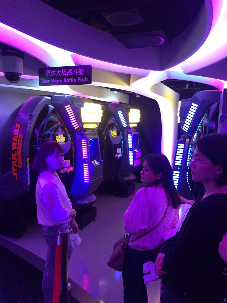 • 星球大战战斗舱Star Wars Battle Pods:就是一个小型的,左右摇杆类的游戏室,左边控制大招,右边控制上下左右方向,然后按钮去打怪。只算凑合吧。