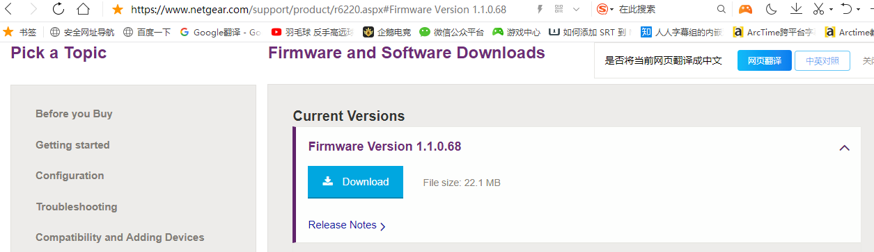 期间,根据看到的提示,有新版本的固件,去升级Netgear的R6220的固件