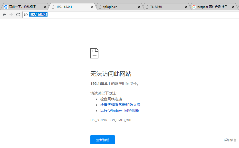 升级了路由器的配置,但是默认IP地址与其他此处另外一个路由器冲突了,都是