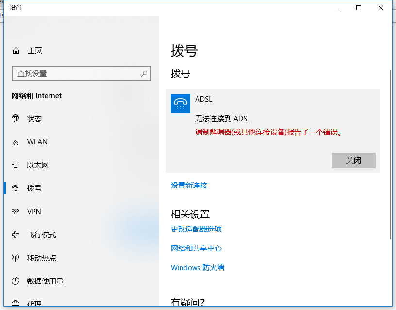 当然,去连接有线的LAN口,也无法ADSL拨号:
