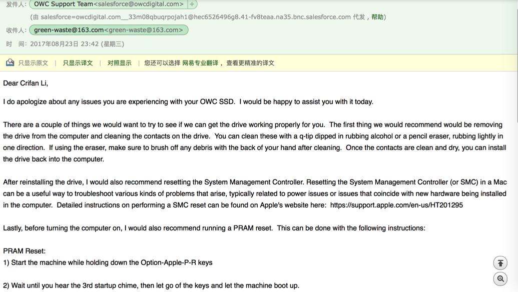 转载请注明:在路上 » 【记录】和OWC的售后客服邮件沟通Aura SSD的全款退货问题