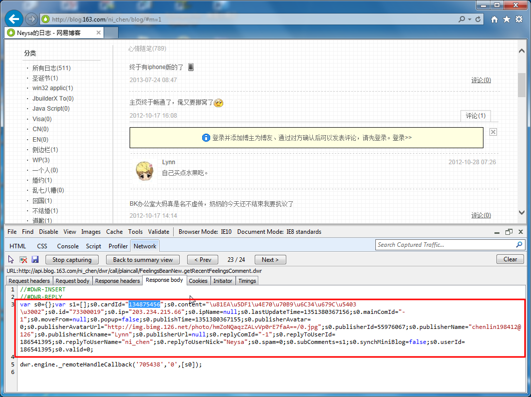 【记录】用Python解析网易163博客的心情随笔FeelingCard返回的DWR-REPLY数据