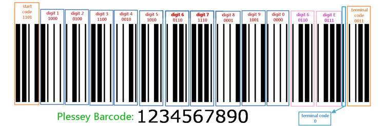Plessey’s barcode pattern is so simple that, with casual familiarity with the code, you can actually read the bar codes with your eyes.