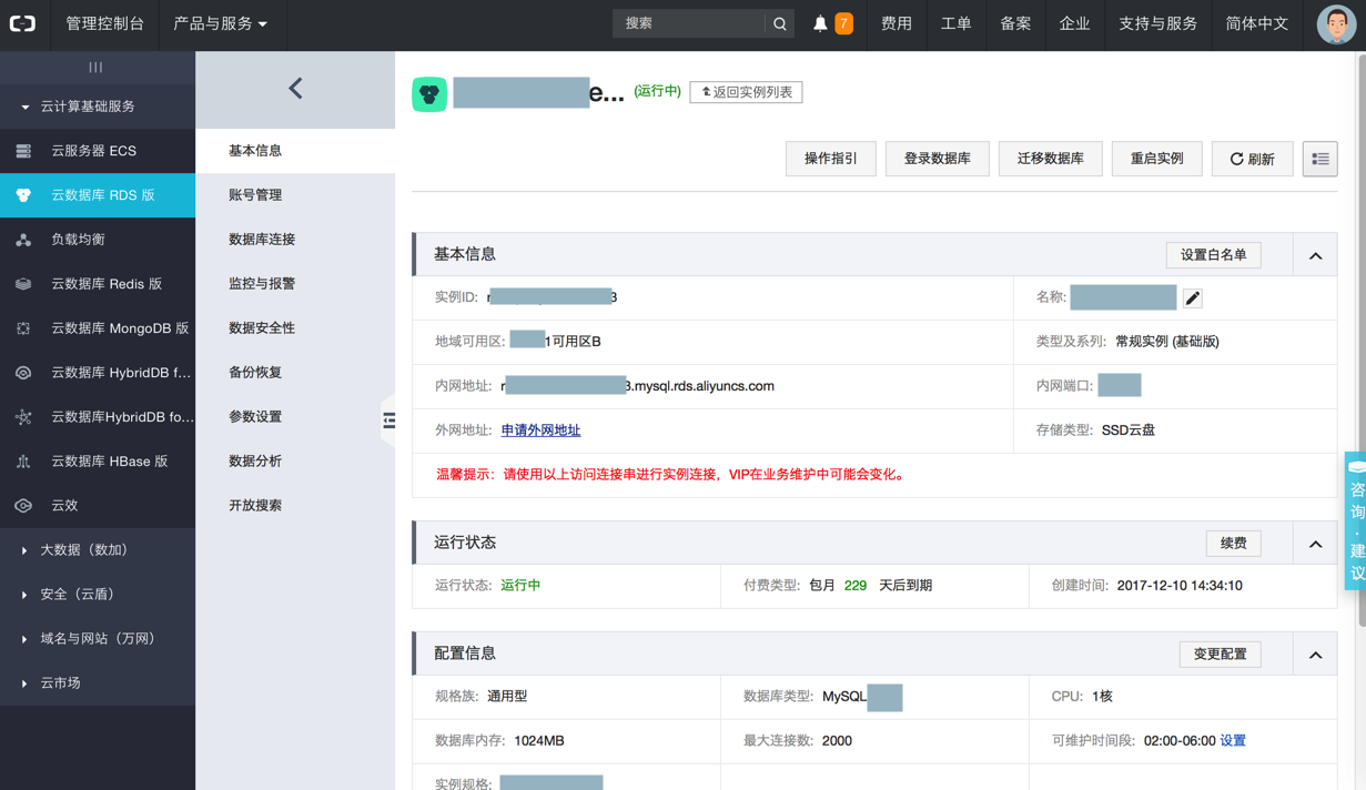 (阿里云后台可以针对RDS数据库申请外网IP,再去加上IP白名单,也可以实现很好的安全控制)