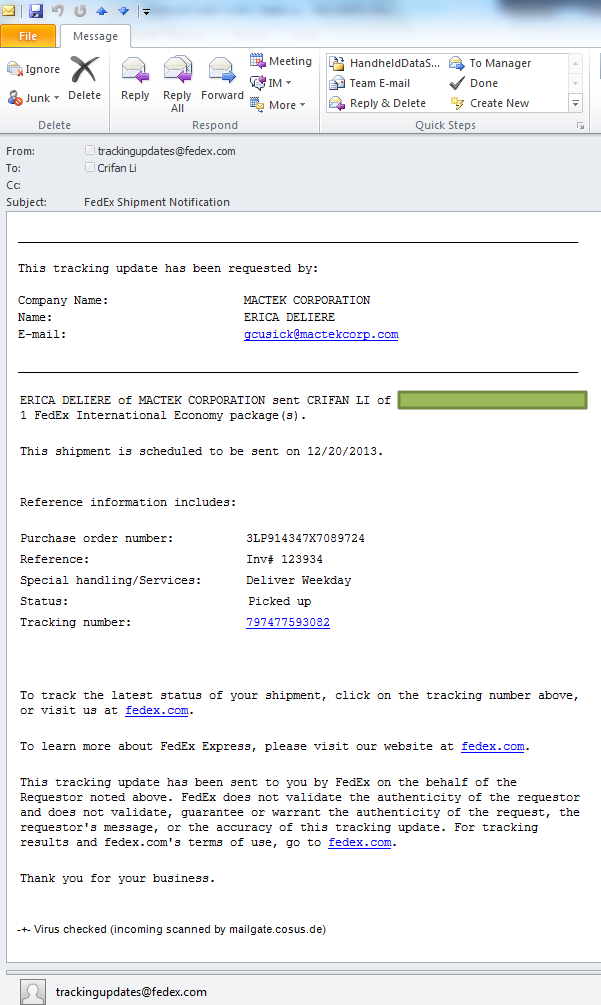 6.后来注意到,卖家给Fedex下单后,fedex还给我发了个发货通知邮件的: