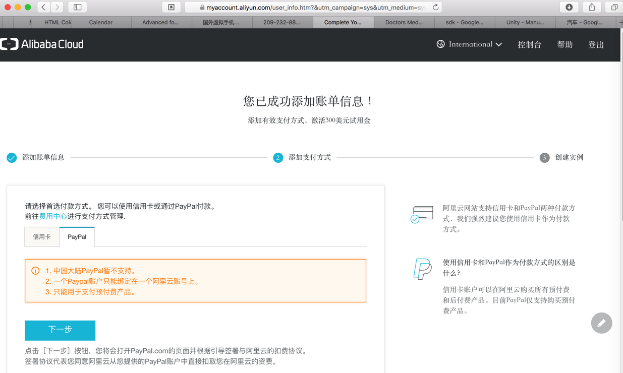 【未解决】注册阿里云国际版账号时绑定paypal出错:错误码 118 抱歉,您所注册的国家不在支持的列表中