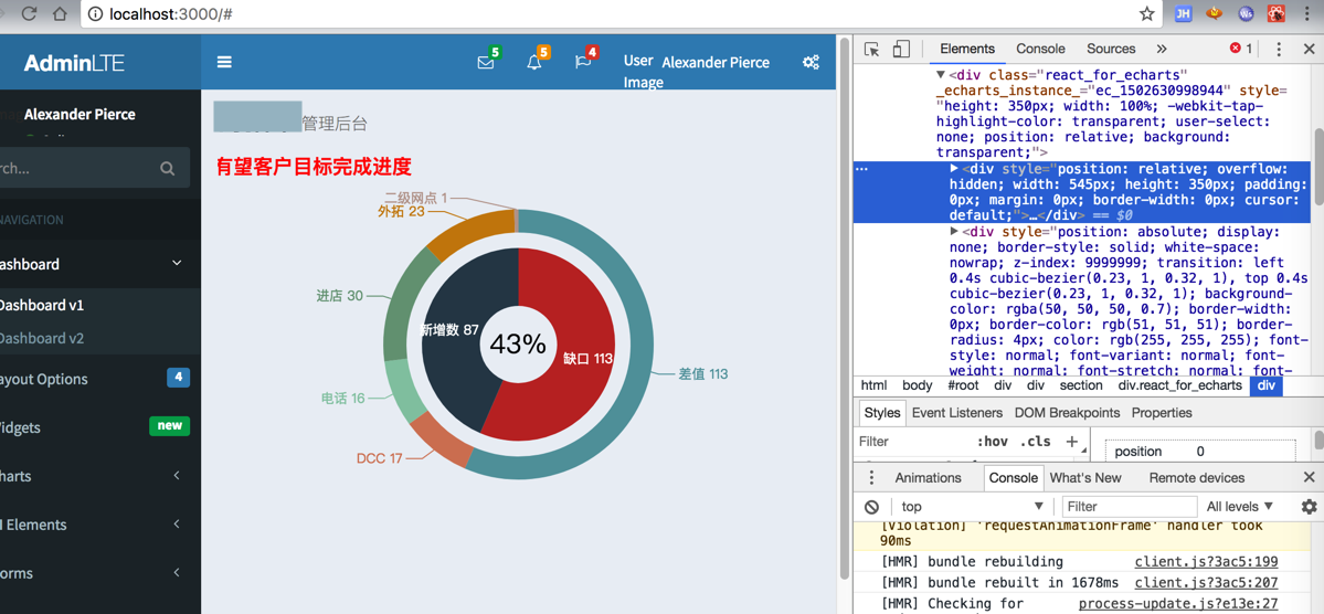 目前已经实现了ReactJS-AdminLTE中添加ECharts的多层饼图==嵌套环形图了: