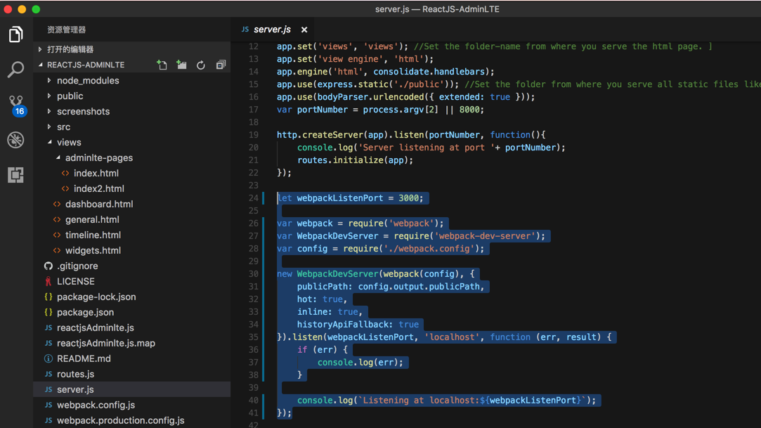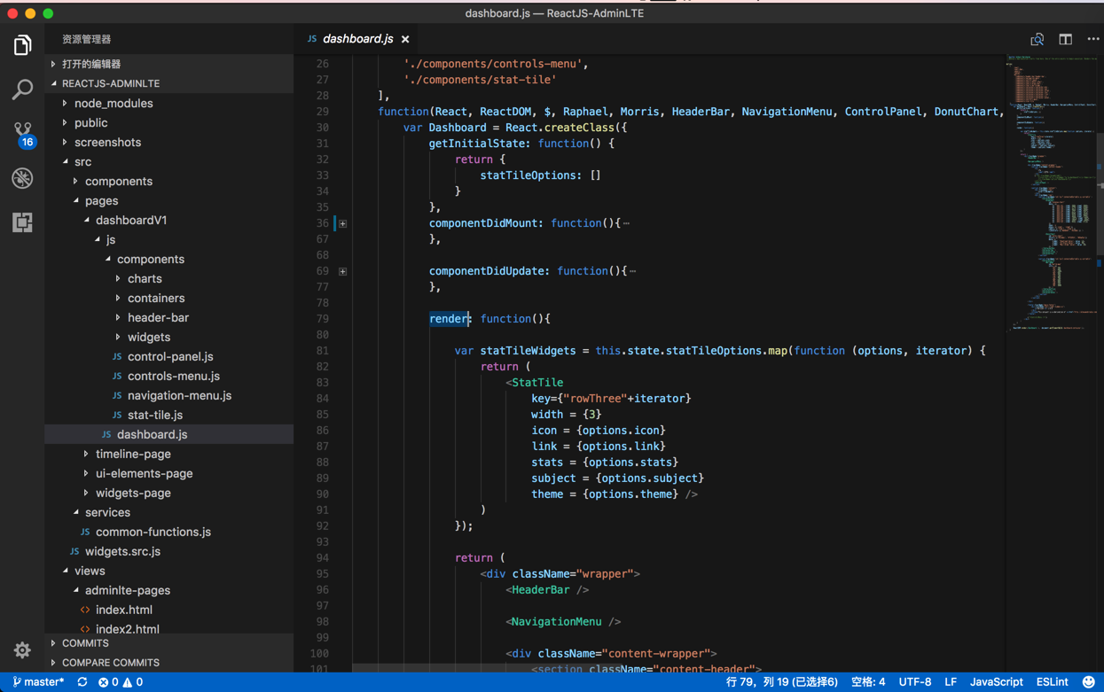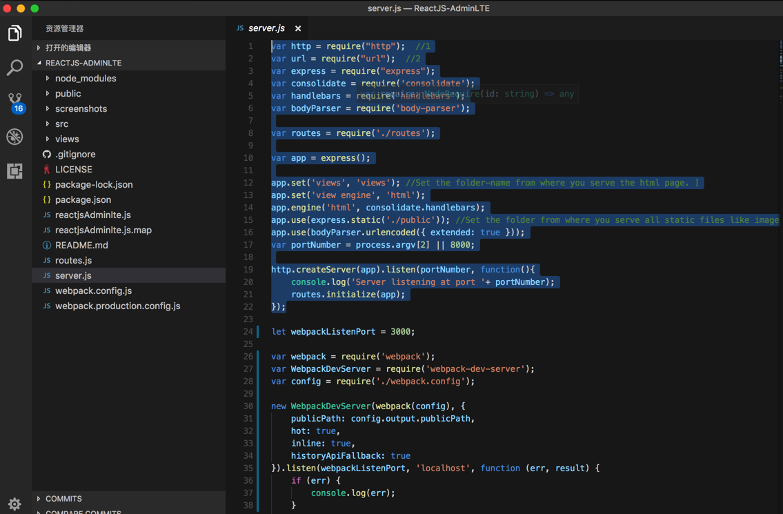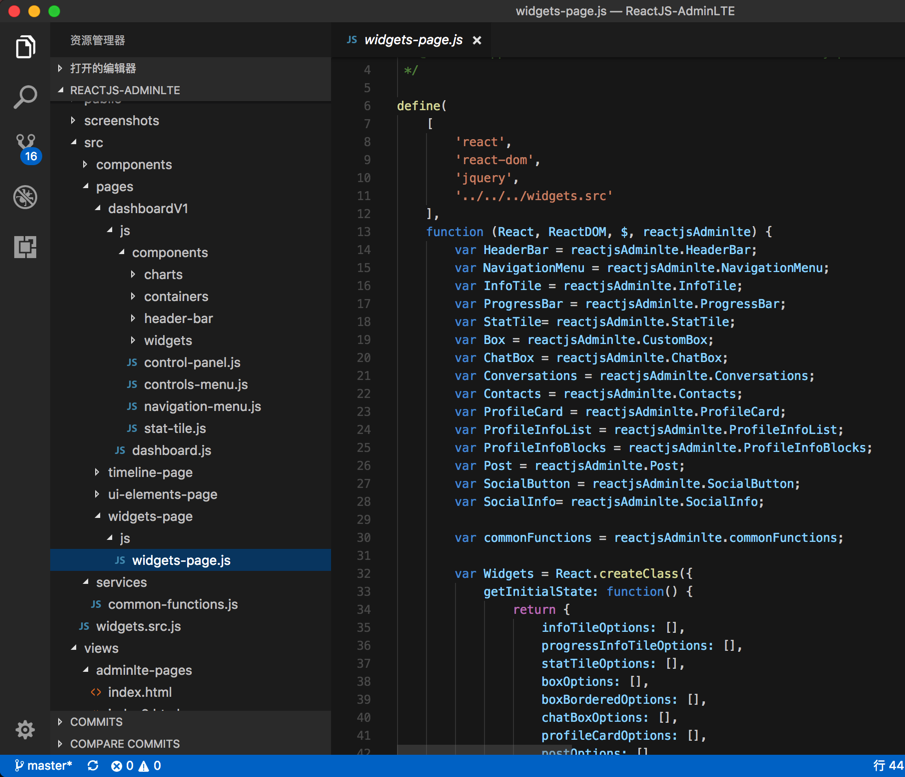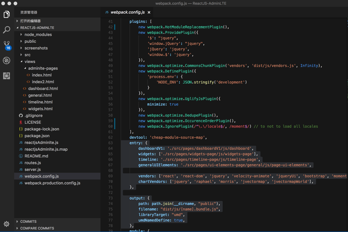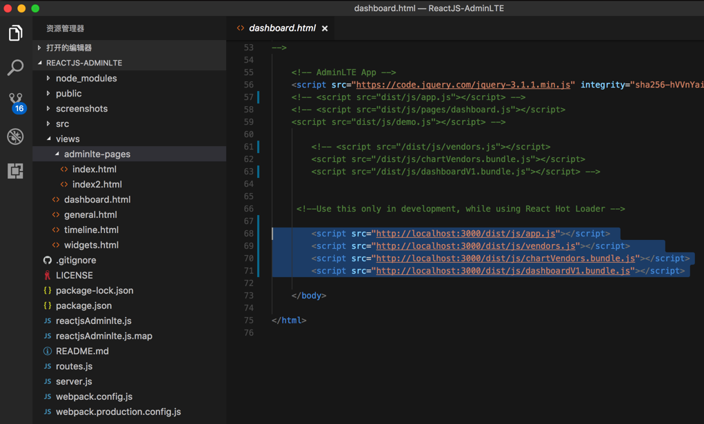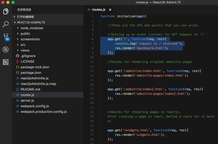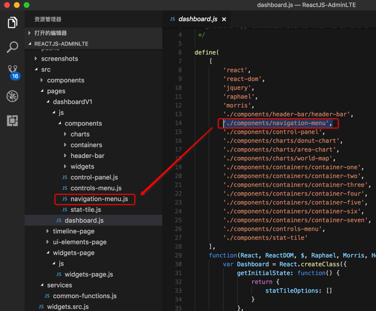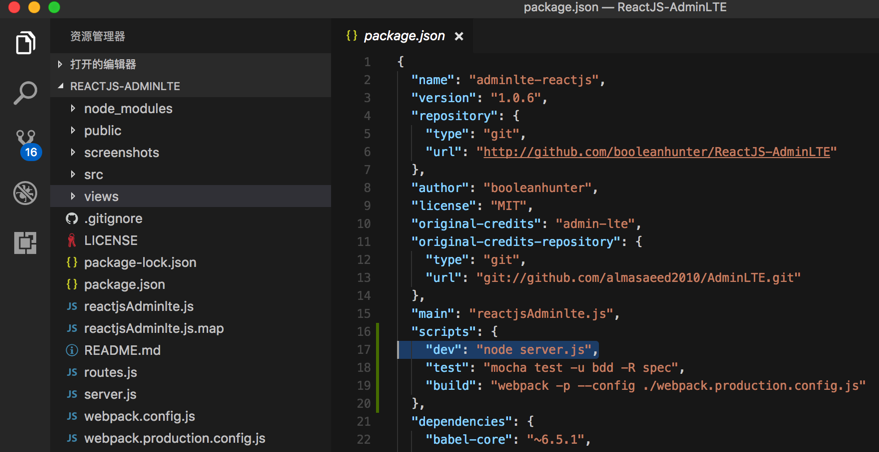 期间,经过一番折腾,终于大体上看懂了ReactJS-AdminLTE,即adminlte-reactjs的development模式时的代码的基本逻辑了。