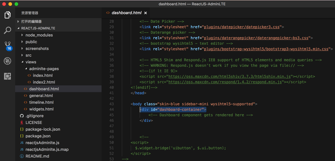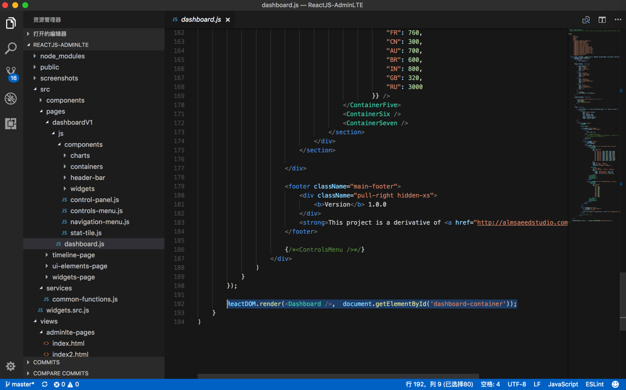 【已解决】ReactJS-AdminLTE中如何调试和哪部分代码是首页的源码