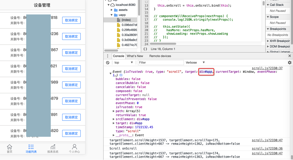 import ReactScrollbar from ‘react-scrollbar-js’; <ReactScrollbar> <div class={style.the_herd_all}> <Search placeholder="请输入牛号搜索" onInputChange={this.onInputChange} /> <div class={style.nn_a_list}> <Scroll loadMore={this.loadMore} hasMore={this.state.hasMore} showLoading={this.state.isLoading} > { this.state.cowList.map(item => { return ( <CowListItem data={item} reproductiveStateTypeDict={this.state.reproductiveStateTypeDict} /> ); }) } </Scroll> </div> </div> </ReactScrollbar> |