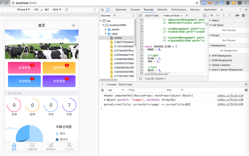 然后(参数curUrl发生变化)传递给Header时,调用到了:
