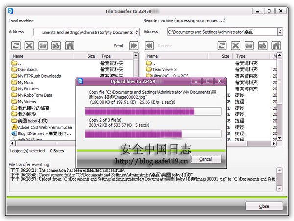 控制和被控两边的电脑是透过一个中间服务器来取得一个ID的 (替代电脑的IP),您完全不需要知道被控端的IP就能跟对方连线(即使对方位于内网),重点是速度也很快,我测试了一下,非常好用,也很方便,重要的是不太复杂一般用户也可以使用!