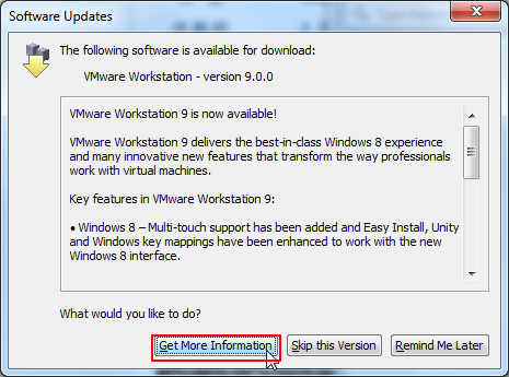 15.另外由于启动了更新检测,结果提示有VMWare 9出来了: