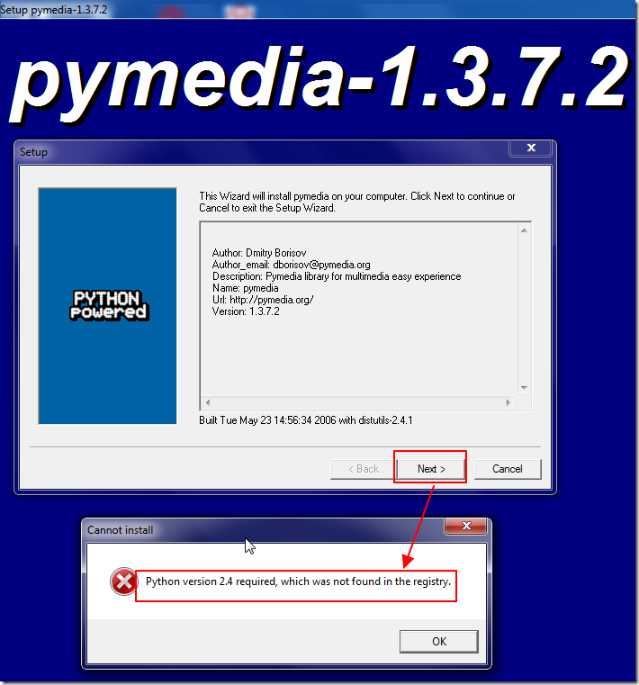 解压后得到文件夹pymedia-1.3.7.3,进入后,执行安装,结果失败: