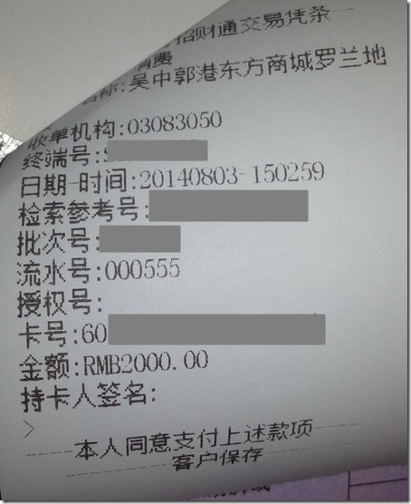 付了2000元定金: