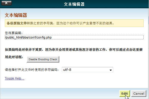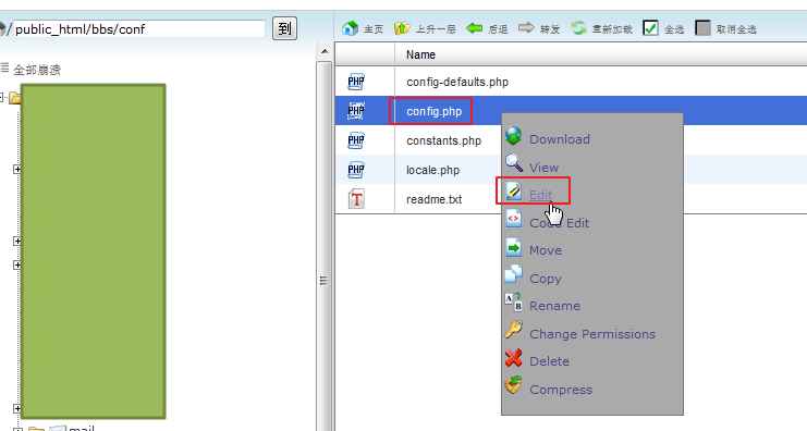 此处用在线cpanel中的文件编辑器去修改