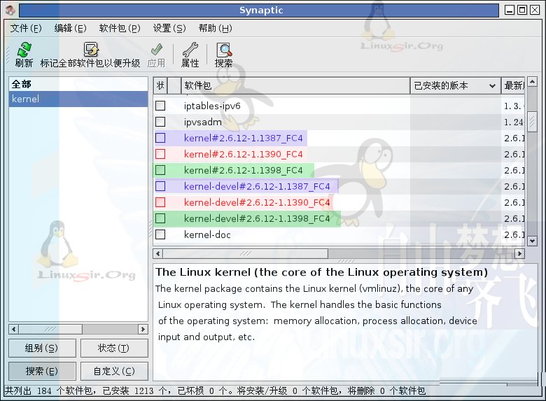一般的情况下选择发行版所提供的内核升级包及源码包要好;您可以通过 apt+synaptic 来选择装,但不要把老内核删除,系统的完整性是很重要的;一般的情况下如果通过新内核的在线升级能解决问题的,我们也没有必要编译了;我们前面已经说过 了;如果不能用新的内核来驱动,我们可以在新的内核的基础上进行编译,当然我们必须要下载kernel-devel 或者 kernel-source 包;