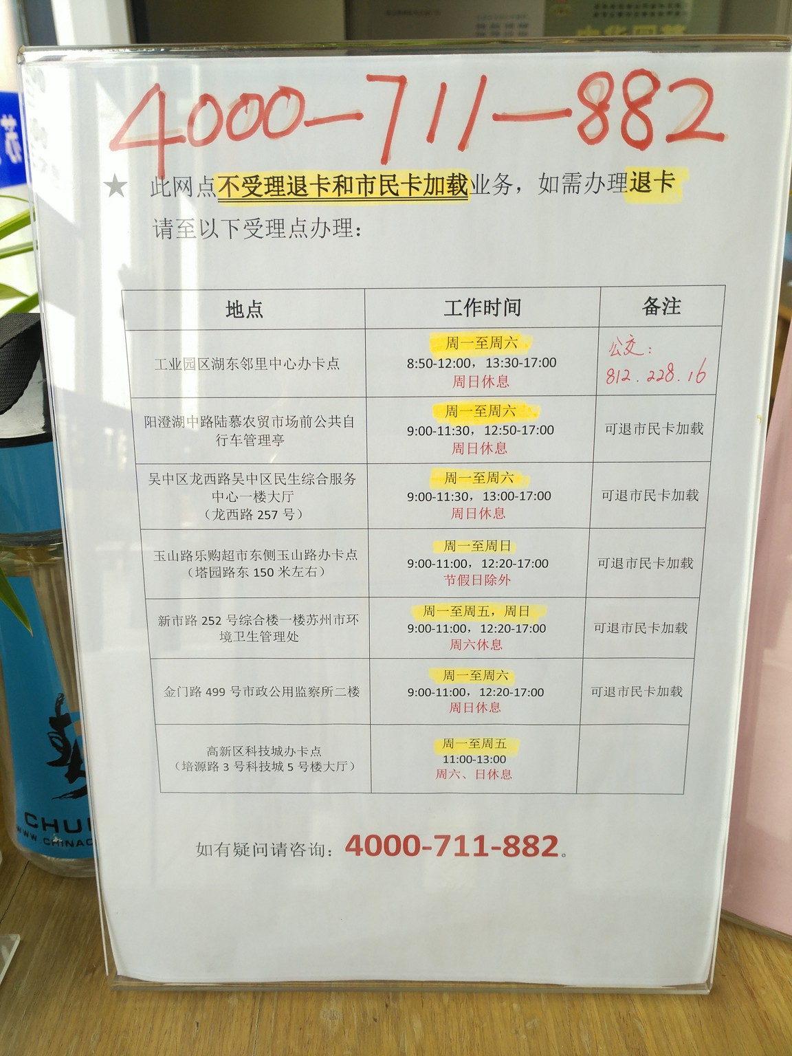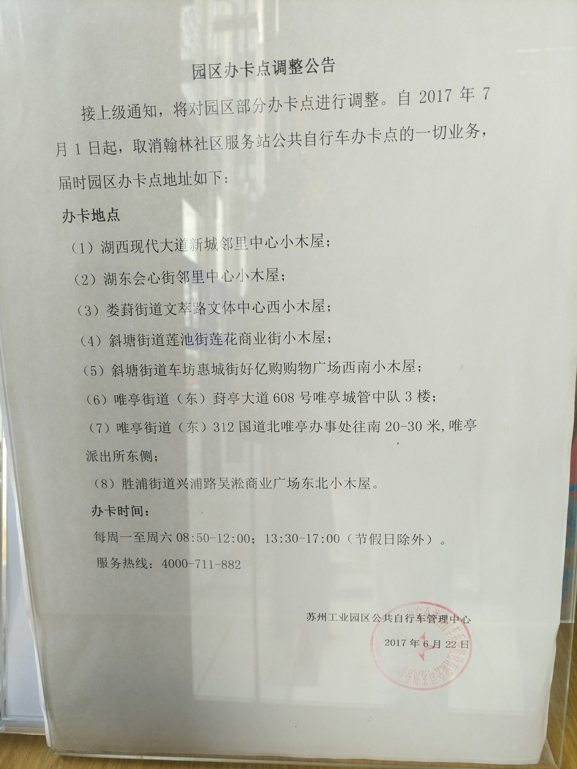 翰林邻里中心的,办卡点说让我到。湖东邻里中心来退押金。结果湖东邻里中心去打电话查询了,确定我的卡是没有押金,只有十元的工本费的。只需要带卡和身份证就可以了。之前是没有押金的,我以为是有100元的押金是我记错了,实际上只有十元的工本费。虽然退了卡,但是工本费也是不退的。所以现在对于卡是否退倒是无所谓的。如果想要退卡打对应的电话去说注销卡就可以了。转载请注明:在路上 » 【记录】退公共自行车卡 Post Views: 964