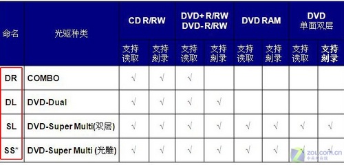 下面我们来介绍型号中的第五部分、也是最后一部分,“-”后面的两个字母用于表示这款华硕笔记本采用了何种类型的光驱,目前以SL(DVD刻录机)和DR(Combo光驱)最为常见。详细含义见下表: