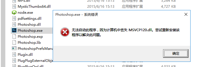 运行绿色版的Photoshop,结果出错了:无法启动此程序,因为计算机中丢失MSVCR120.dll。尝试重新安装该程序以解决此问题。 [折腾过程]1.通过QQ的电脑管家的软件管家,去安装:VC++ 2010结果问题依旧。2.搜:计算机中丢失MSVCR120.dll参考:VS2013运行时库缺失_百度电脑专家然后去安装:VS2013redist_x86.exe就可以了。转载请注明:在路上 » 【已解决】运行绿色版Photoshop出错:计算机中丢失MSVCR120.dll Post Views: 1,051