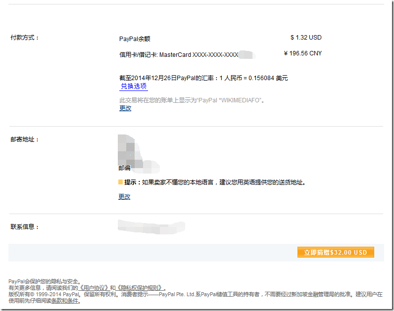 之前已经捐过一次了。最近看到维基百科主页出现类似于广告性质的醒目提示,说是希望大家捐款给他们,这样就可以摆脱赞助商了。所以这次继续给维基百科去捐款。