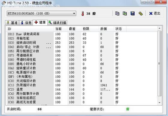 电池时间 3小时30分,已经冲放完激活过了。   硬盘检测信息。上班时候没有开特别长的时间。但是开过一整晚烤机。温度38-40度左右。