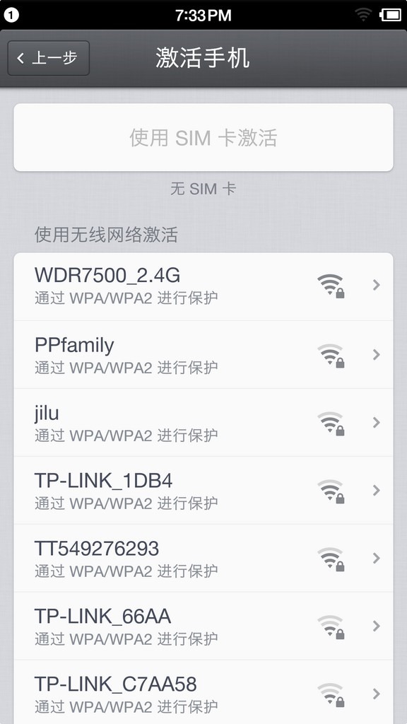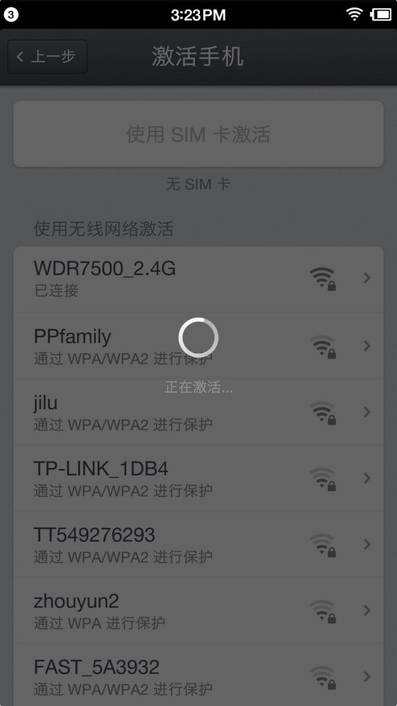 激活手机,点击连接WiFi: