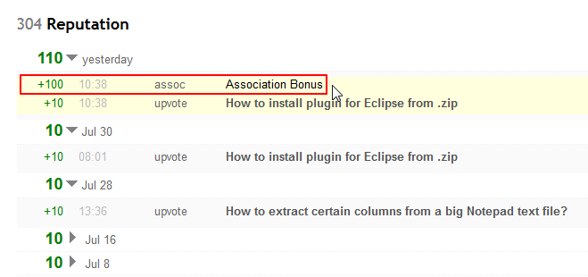 最近的reputation是194,今天,突然发现一下子,变成了304: