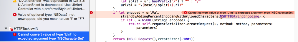 | HTTPTask.swift:390:84: Cannot convert value of type ‘UInt’ to expected argument type ‘NSCharacterSet’ |