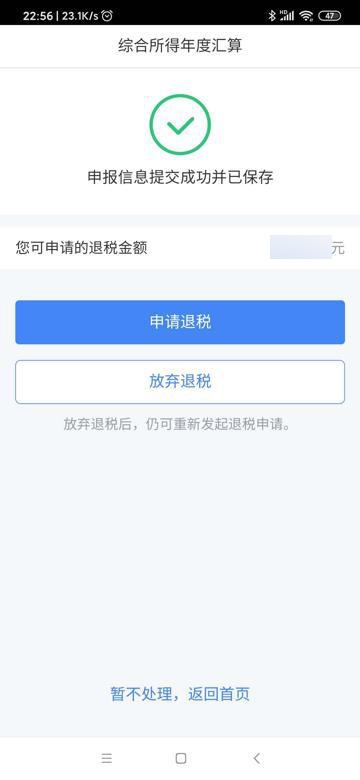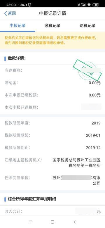 折腾:【已解决】2019年度个税汇算多退少补期间,接着去提交:点击去 提交申报:申报成功回头看看点击了 综合所得年度汇算 点击进入看详情:即可。然后就等待退税打款到我的银行卡上。转载请注明:在路上 » 【记录】提交申报申请2019年个税汇算 Post Views: 1,090