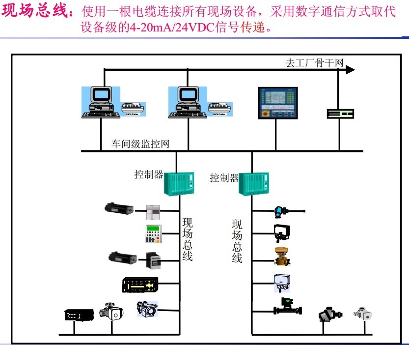 先从宏观上对于什么是现场总线,有个直观的认识: