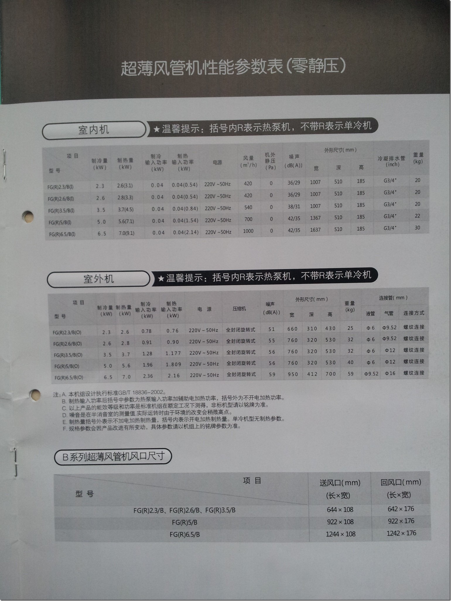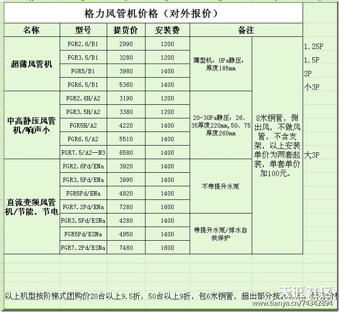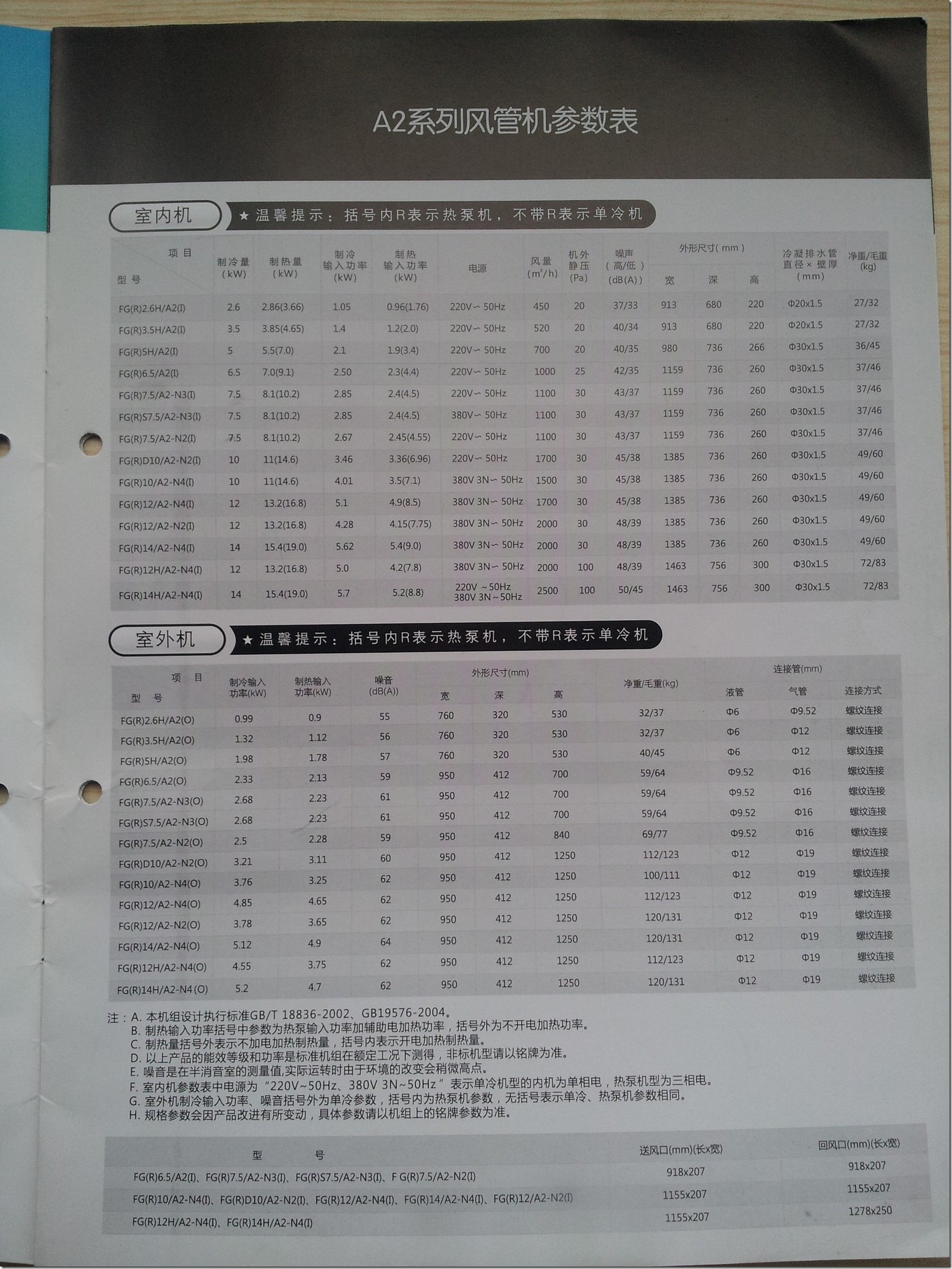 另外,再附上格力的中央空调和风管机的各种参数和常见报价: