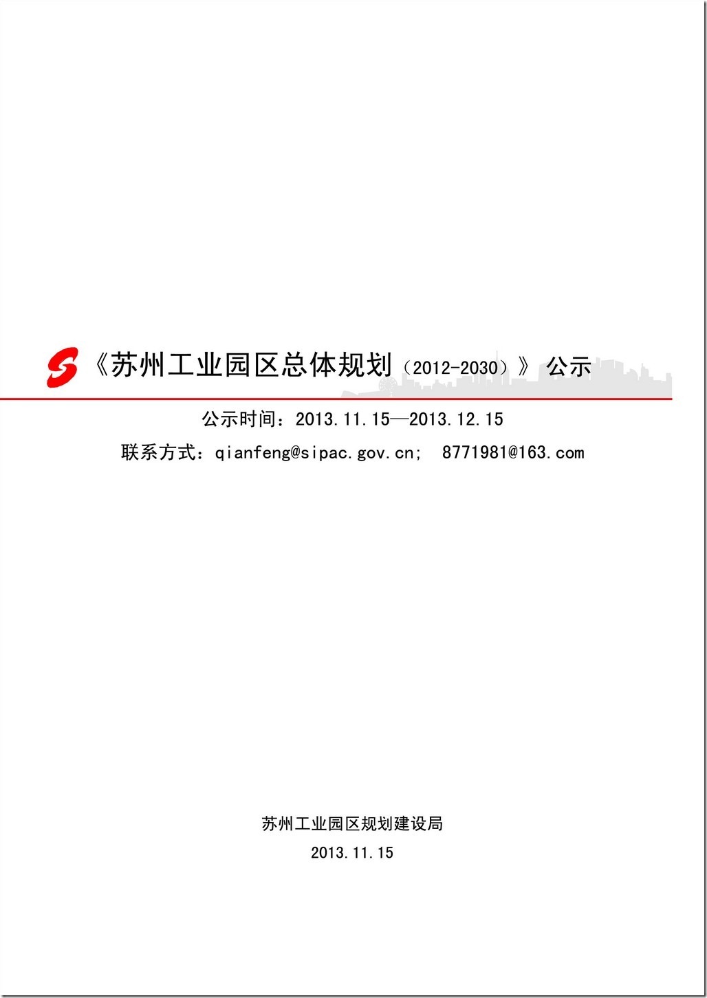 苏州工业园区总体规划 2012-2030 公示稿