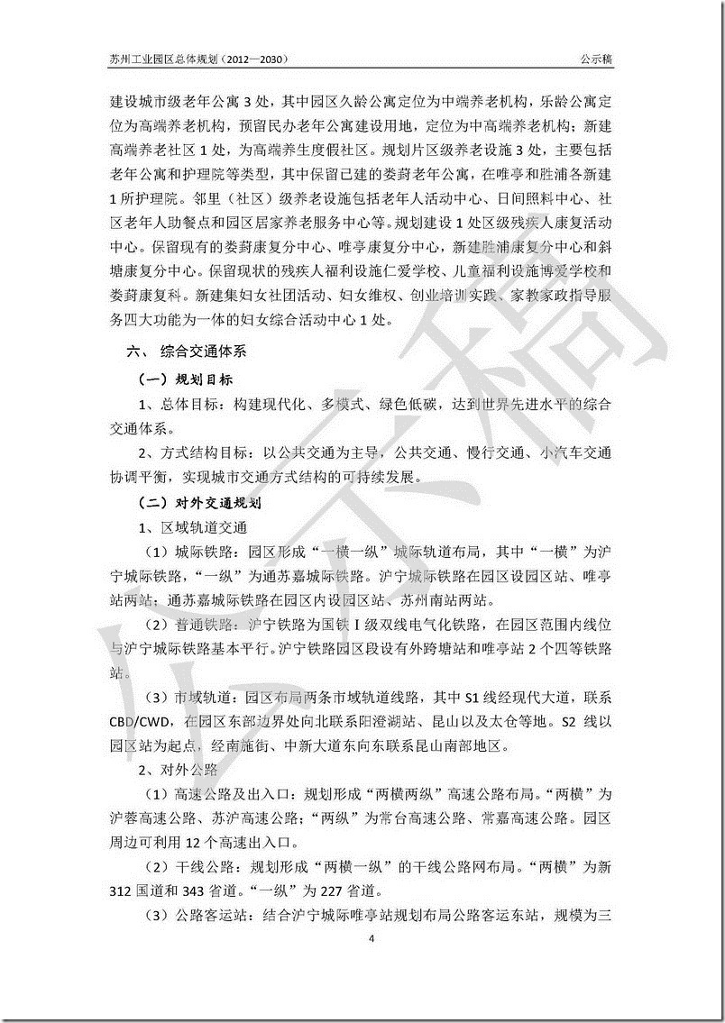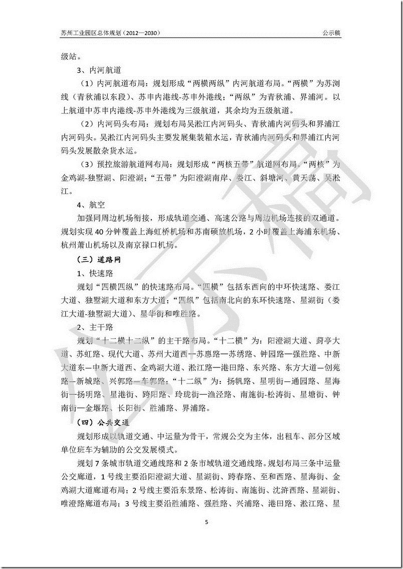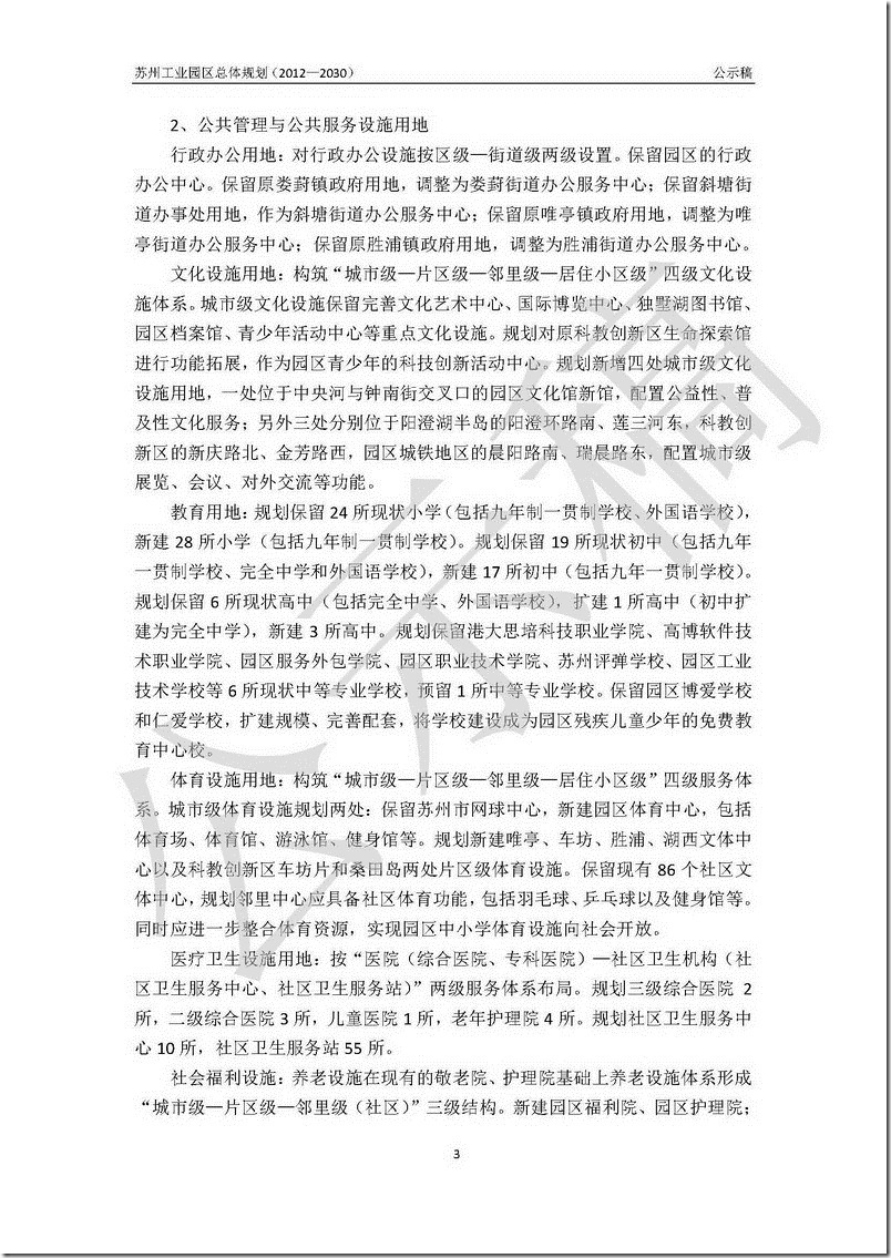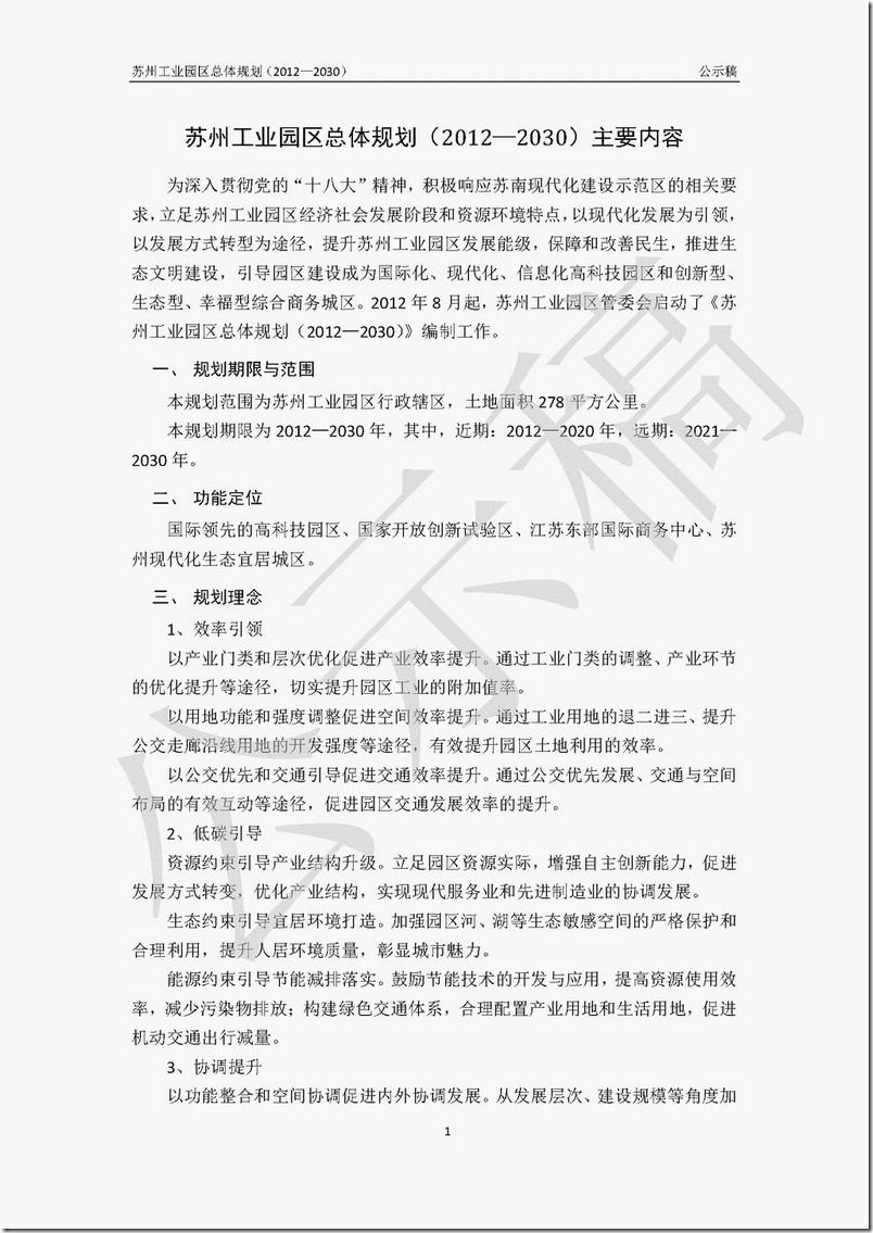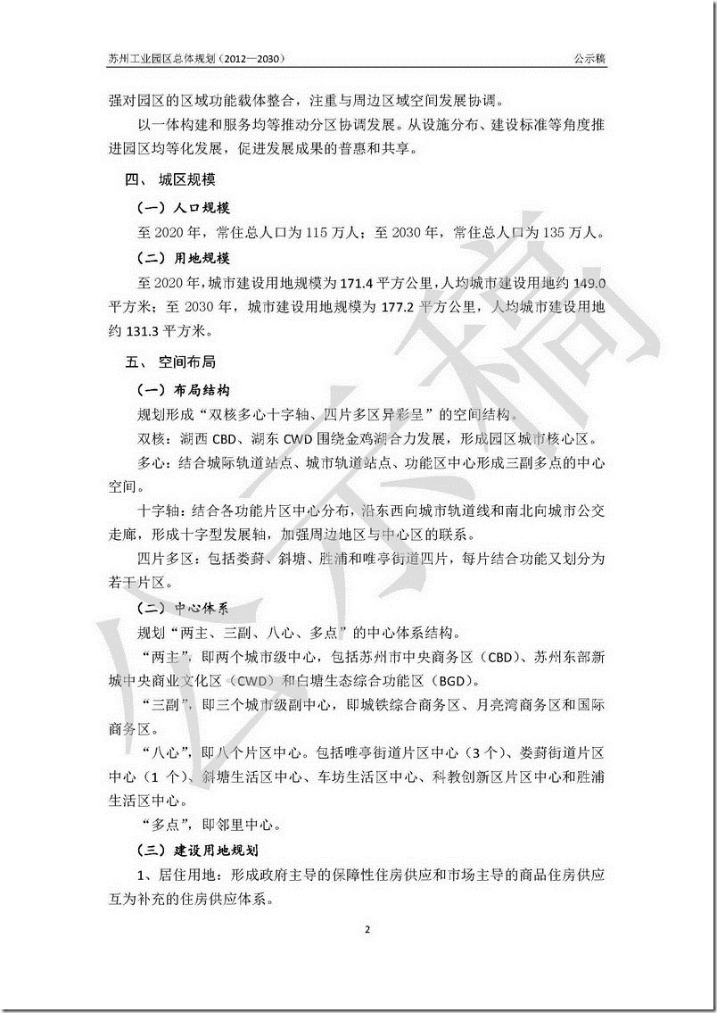苏州工业园区总体规划(2012-2030)公示稿 – 部分内容的文字版