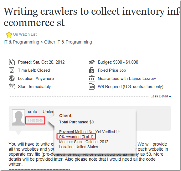 在提交你的proposal之前,可以先去看看雇主的信息中的Award Rate。