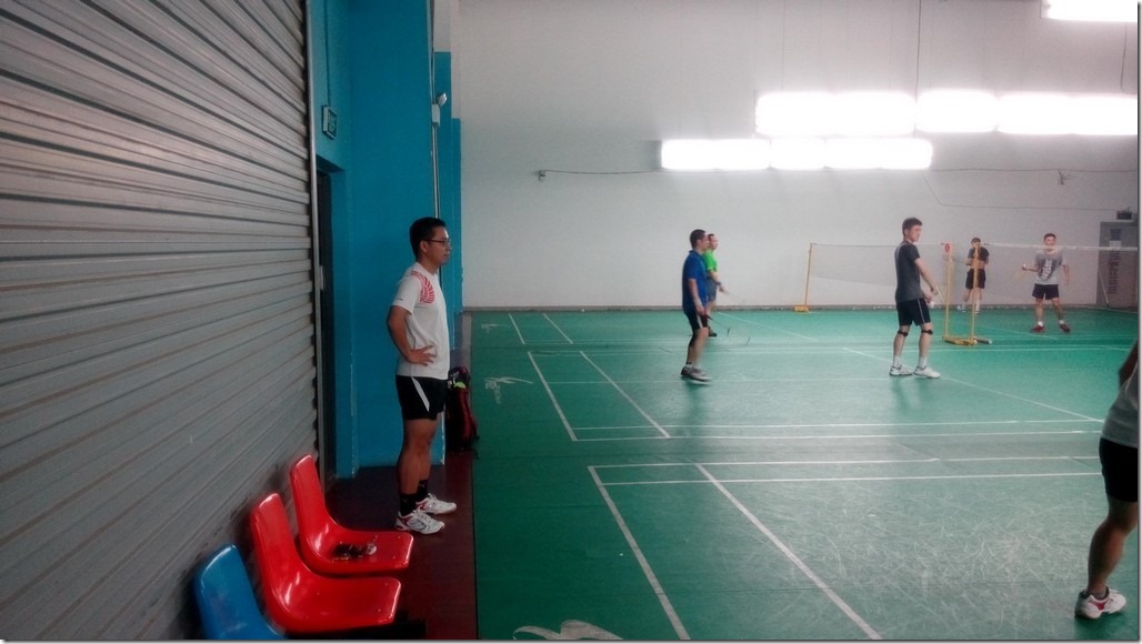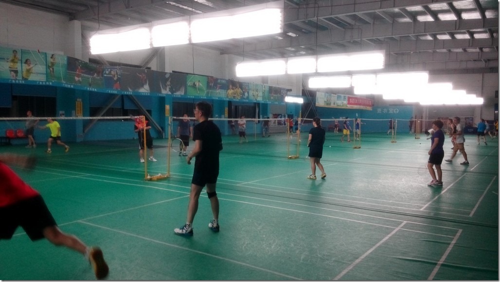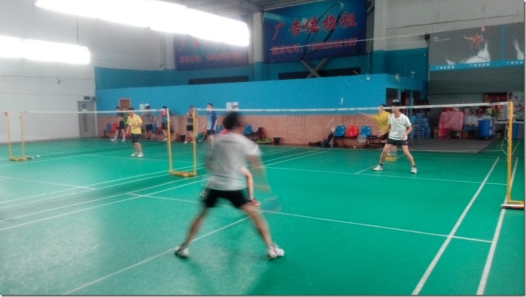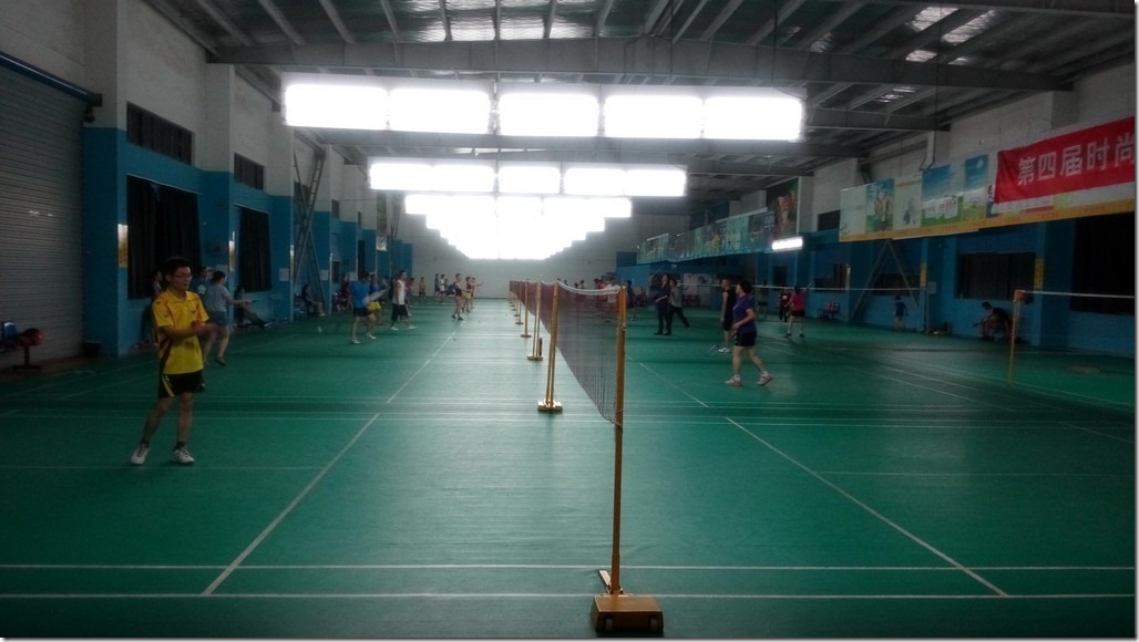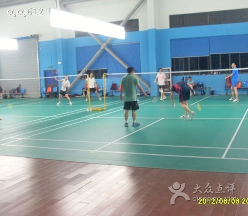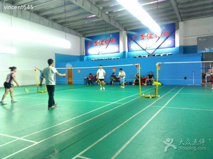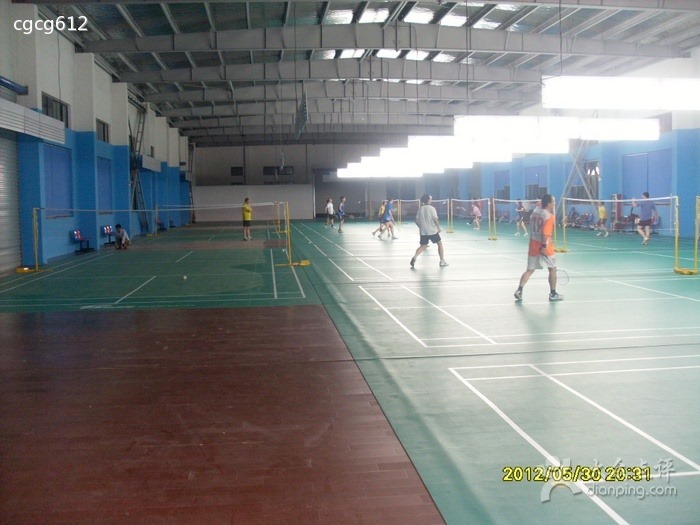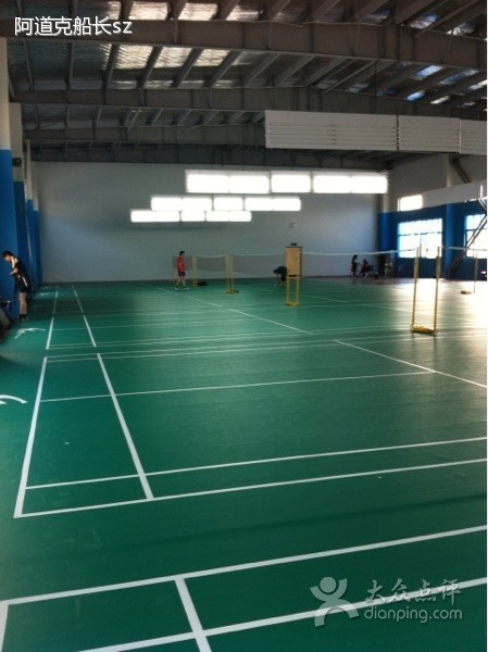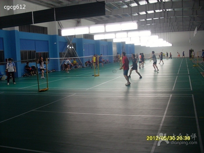 “看起来应该是厂房改造的,不过塑胶的底下不是水泥地板而是木地板,所以不用担心会伤脚。灯光,空间高度什么的都很不错,但为了多划出几块场地吧,稍显拥挤,边上休息的凳子几乎紧靠底线,中间场地还挂了广告牌,打后场球时很担心会不会一拍子抡上去。停车还行,不过第一次过去时地方可能不是很好找,建议找准地图。总体感觉不错。”