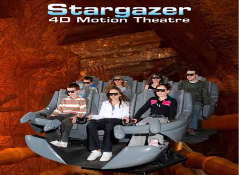 Stargazer 4D动感影院由英国Simworx公司生产,你可以亲身感受虚拟实境的逼真效果,水滴、颤动、气流、挠腿、水流喷射、气味、下雪、烟雾……奇妙的现场效果如亲临其境。